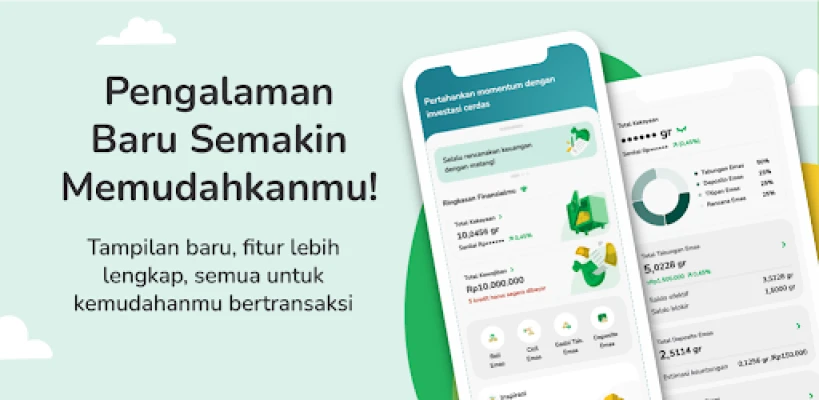 Tring! juga dilengkapi beragam fitur cerdas untuk pengalaman finansial yang tak tertandingi. Dapatkan notifikasi pengingat jatuh tempo dan pantau angsuran Anda dengan mudah melalui kartu angsuran. Ikuti fluktuasi harga emas secara real-time dengan indikator harga emas, dan kelola keuangan Anda melalui fitur multi-pembayaran yang terintegrasi. Dengan keamanan biometrik seperti sidik jari atau Face ID, data dan transaksi Anda selalu terlindungi. Jelajahi juga artikel edukasi investasi, temukan cabang Pegadaian terdekat, serta kumpulkan Pegadaian Poin, semua dalam satu aplikasi yang ringkas dan modern, dengan proses aktivasi dan pembukaan akun yang cepat.