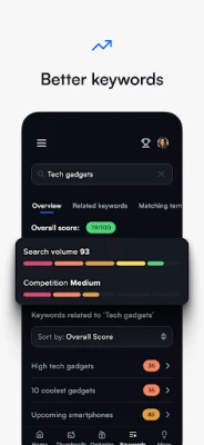 Dengan vidIQ, menemukan ide konten yang relevan dan berpotensi viral menjadi lebih mudah. Fitur Kata Kunci revolusioner kami memungkinkan Anda menemukan peluang baru dalam hitungan detik, menyajikan rekomendasi kata kunci terkait serta video trending yang dicari audiens Anda. Alat SEO Video ini memberikan analisis dan wawasan mendalam yang bersifat actionable, membantu Anda mengidentifikasi topik mana yang harus difokuskan dan bagaimana mengoptimalkan video Anda untuk kinerja terbaik, bahkan memungkinkan Anda membandingkan performa saluran Anda dengan para pesaing.